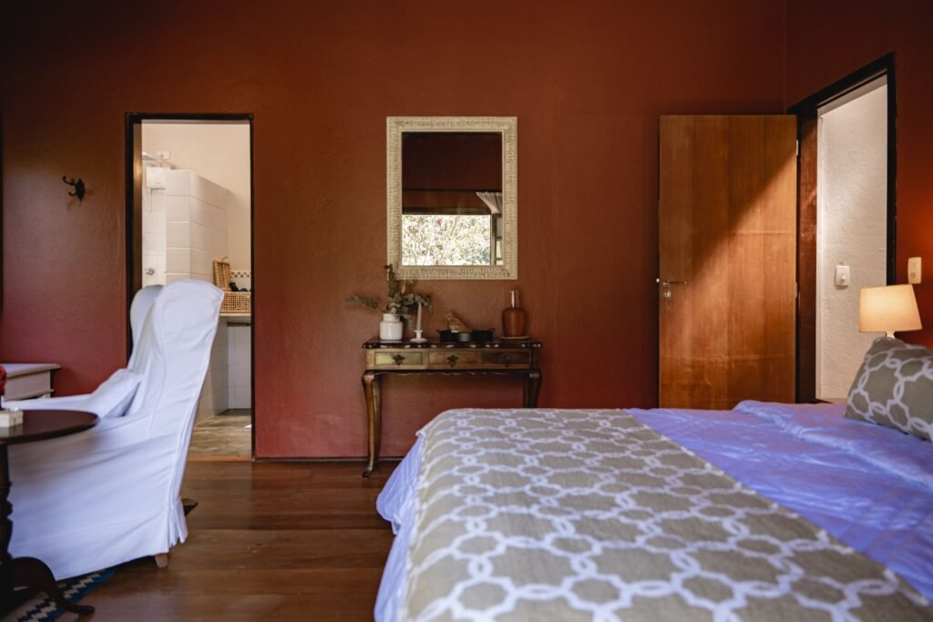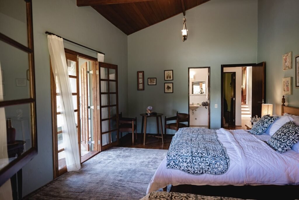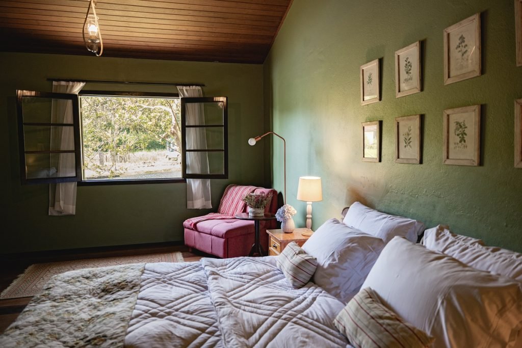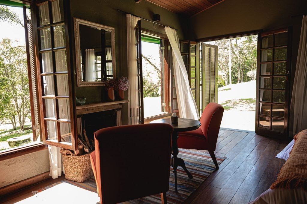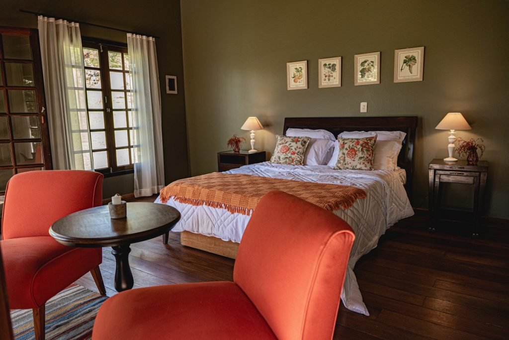 A suíte Jardim das Pedras é ideal para quem busca ainda mais proximidade com a natureza. Das suas grandes janelas é possível avistar o curso dágua, muitos pássaros e vegetação deslumbrante. Situada em um jardim gramado próximo a sede principal, a suíte conta com lareira, banheira e e todo o charme que vão te proporcionar uma experiência inesquecível.