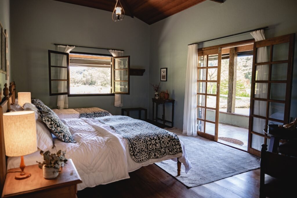 Situada na casa sede da Reserva Mata Grande, a Suíte Varanda tem uma iluminação natural de encantar a todos. Com terraço privativo, suas grande portas ficam de frente para o lago e dão vista ao contexto único da Cozinha da Reserva. Combinação ideal entre a privacidade e descanso que precisamos e o aconchego de estar em um ambiente tão bem frequentado.